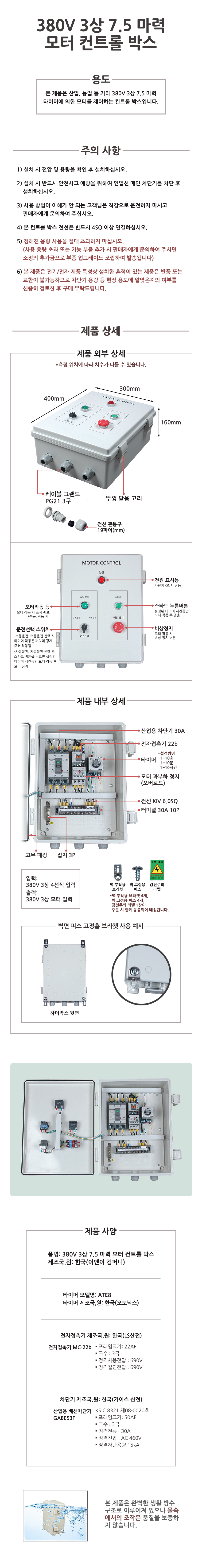 380V 3상 7.5 마력 모터 컨트롤 박스
