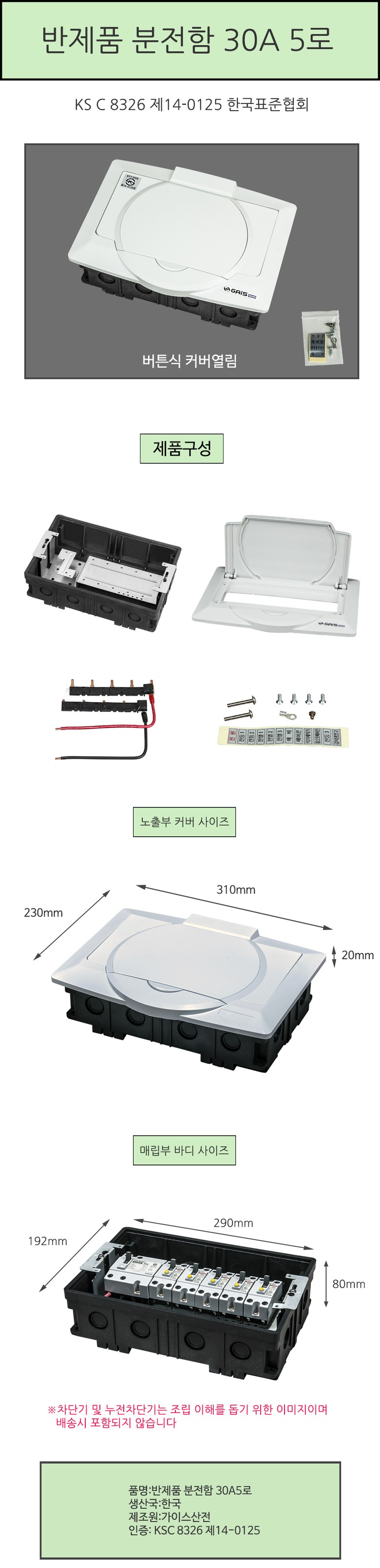 반제품 분전함 30A 5로