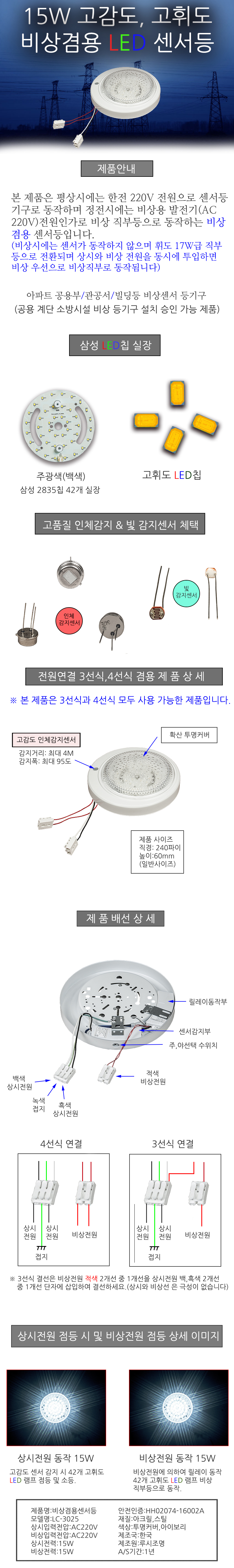 15W 비상겸용 LED 센서등