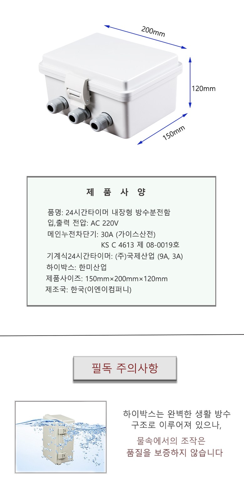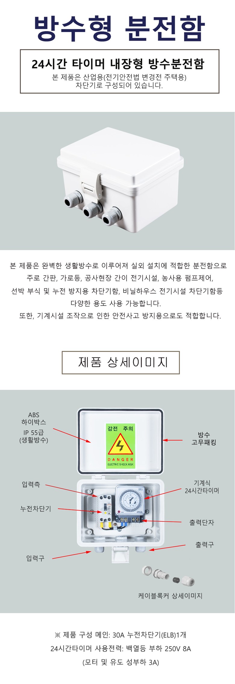 기계식 24시간 타이머 내장형 방수분전함